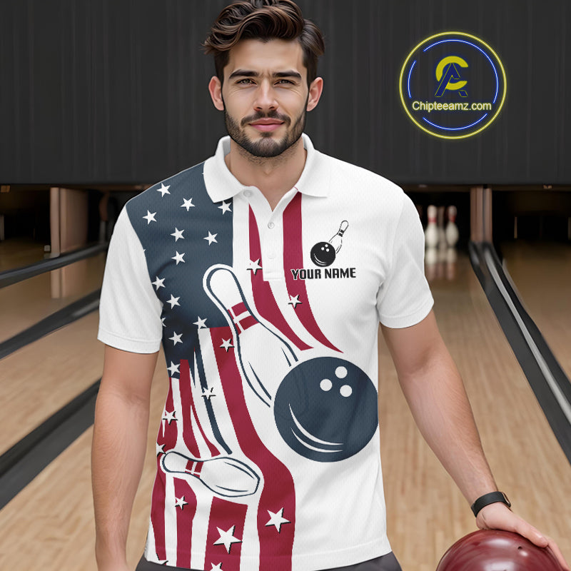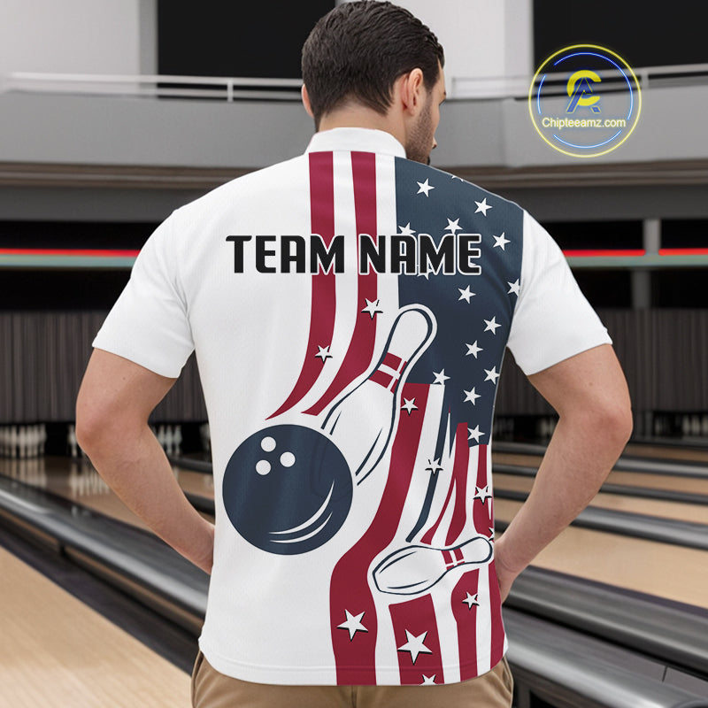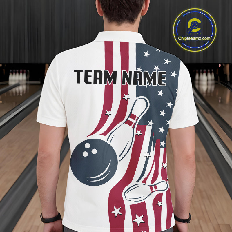 Red, White and Blue American Flag Bowling shirts For Men custom patriotic bowling team uniform jersey NQS10337