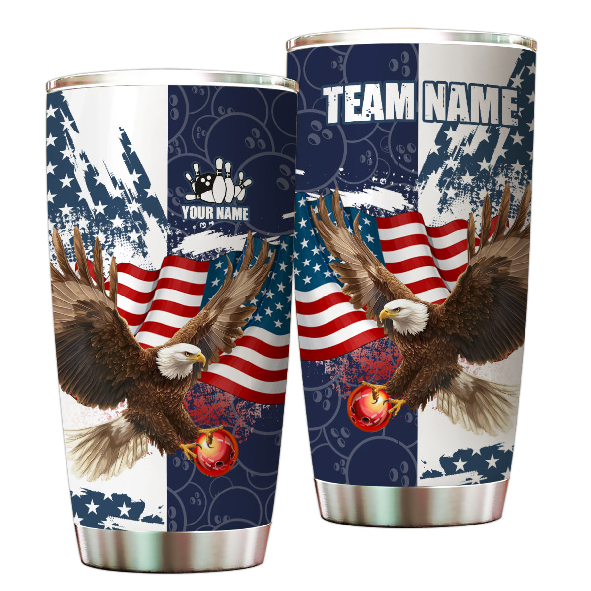 Red, White and Blue American Flag custom Bowling Camo Eagle Bowling Stainless Steel Tumbler Cup NQS9862