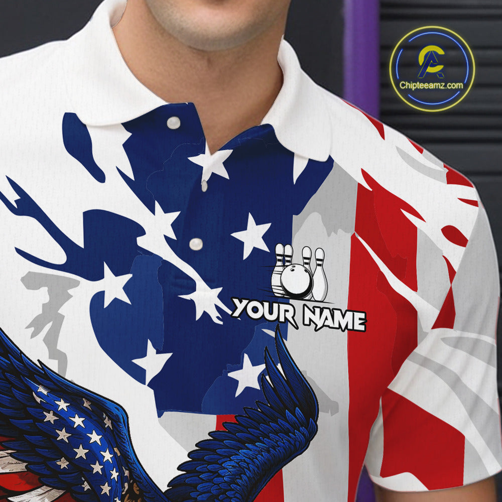 Red, White and Blue American Flag Eagle Bowling Shirts For Men Custom Patriotic Bowling Team Jerseys NQS10639