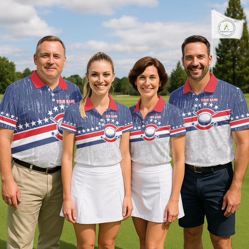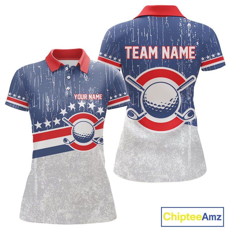 Red, White and Blue Grunge Women's Golf Polo Shirts Custom Patriotic Team Golf Outfit For Ladies NQS11344