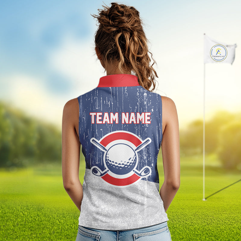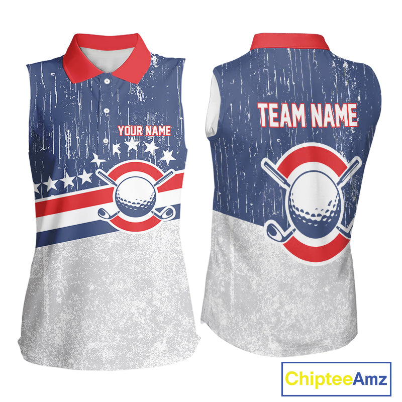 Red, White and Blue Grunge Women's Sleeveless polo shirt Custom Patriotic Team Golf Outfit For Ladies NQS11344