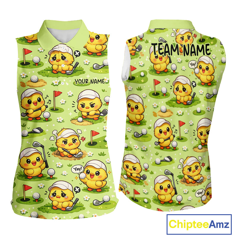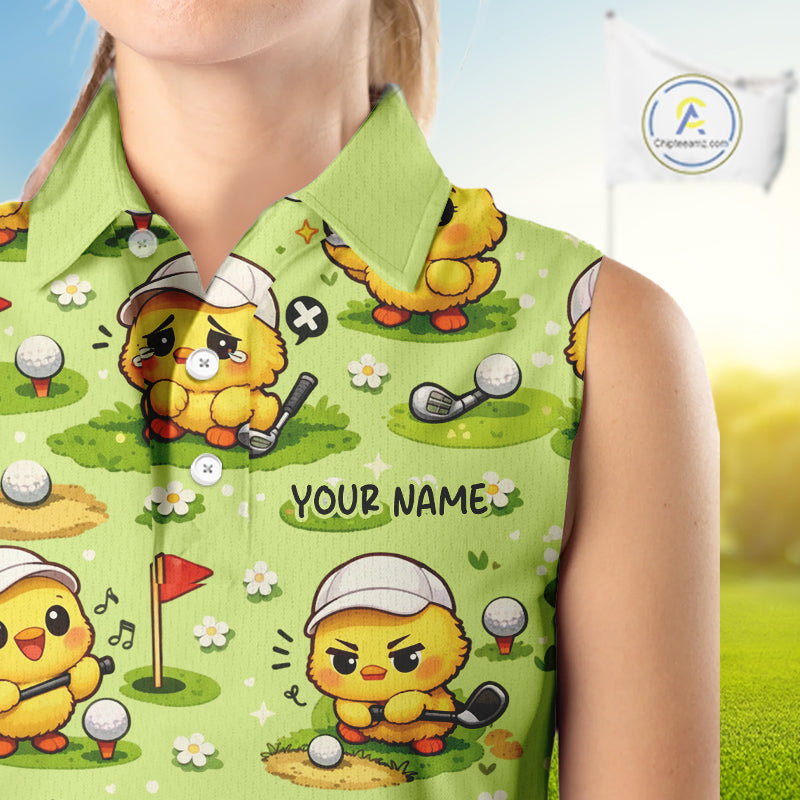 Funny Chicken Golf Sleeveless Polo Shirt For Womens, Cute Chicken With Golf Shirts For Team NHT542