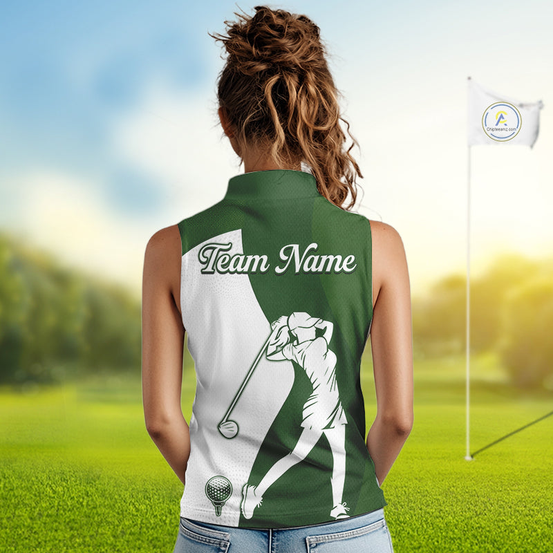 Custom Green & White Womens Sleeveless Golf Polo Shirt, Golf Jersey Team Golf For Women NHT560