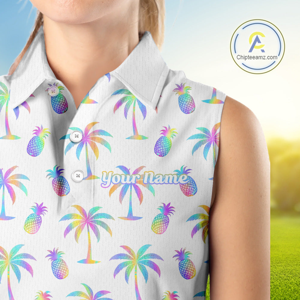 Personalized Tropical Palm Trees Pineapple Women Golf Sleeveless Polo Shirts Holographic Team Golf Clothes NYN2862