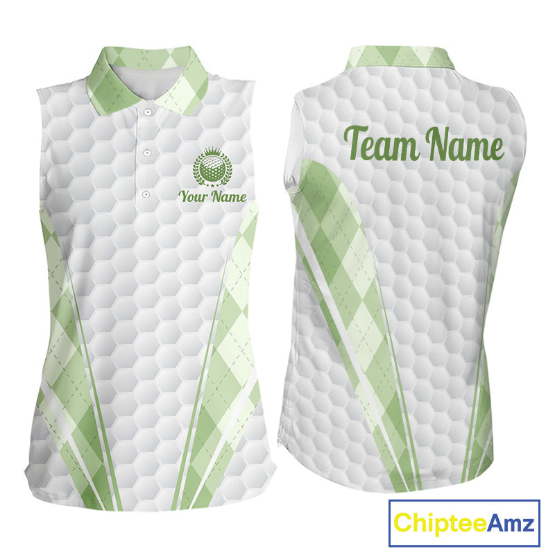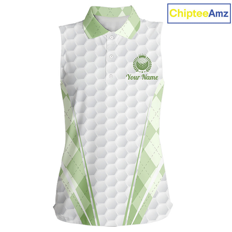 Womens Sleeveless Golf Polo Shirt Argyle Pattern Golf Shirts For Womens Green Argyle And White Golf Ball Gifts NYN2906
