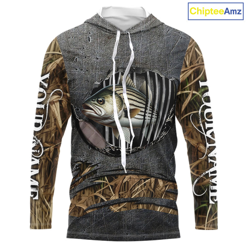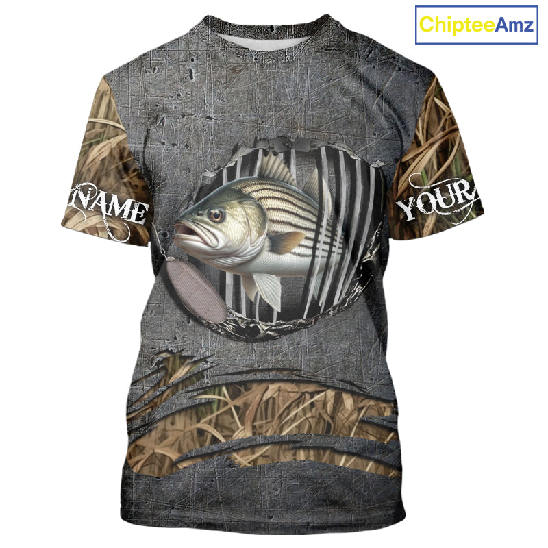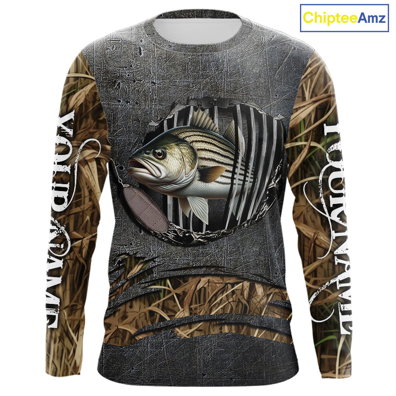 Striped Bass fishing camo metal grunge pattern Custom striper fishing shirts fishing gifts NQS11371