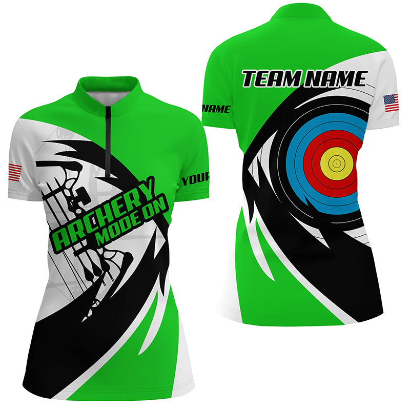 Personalized Green Archery Jerseys Women Polo & Quarter-Zip Shirts Custom Archery Bow Shirts TDM1951