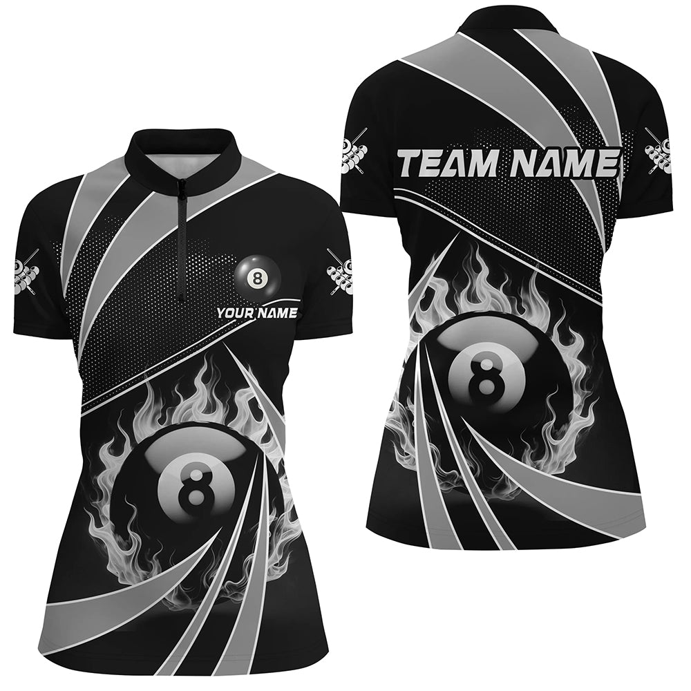 Personalized Grey And Black 8 Ball Pool Fire Custom Billiard Shirt For Women, Billiard Apparel Jersey TDM1974