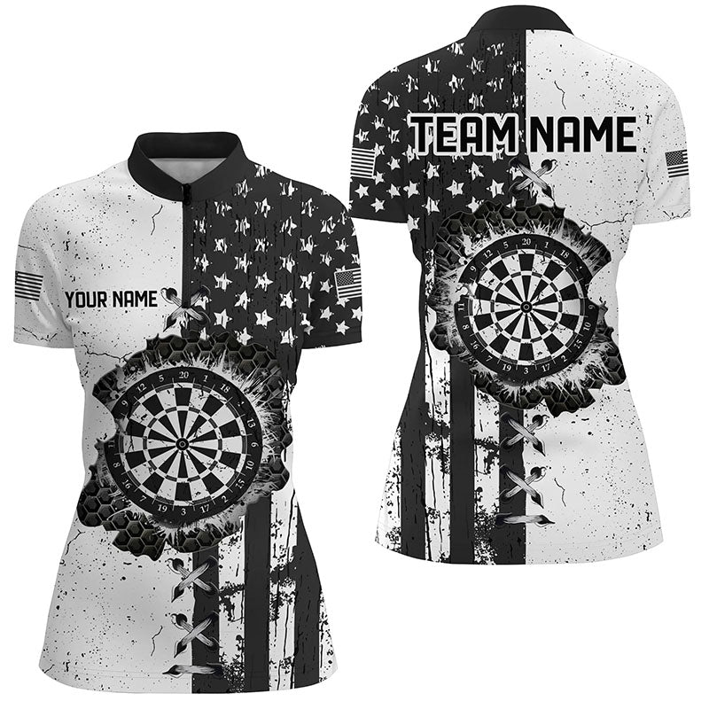Personalized Black White Grunge US Flag Darts Shirts For Women Custom Patriotic Retro Darts Jerseys TDM1986