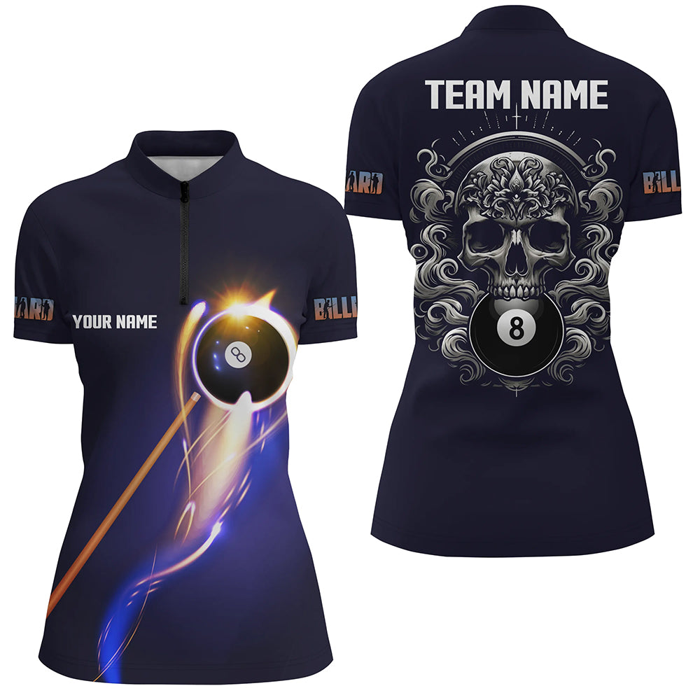 Personalized Glowing 8 Ball Pool Billiard Shirts For Women Custom Skull Billiard Jersey, Pool Uniform TDM2061