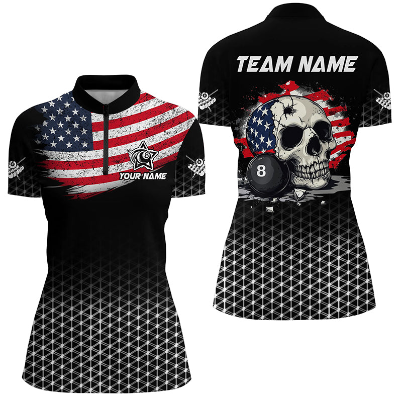 Personalized Patriotic Skull 8 Ball Billiard Shirts For Women Custom American Flag Billiard Jerseys TDM2174