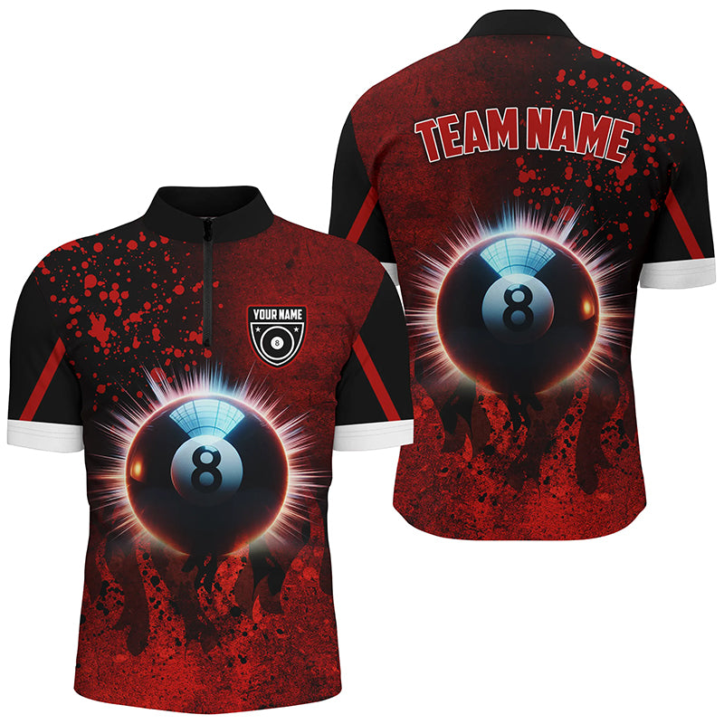 Personalized Glowing 8 Ball Pool Billiard Shirts For Men Custom Grunge Red Billiard Pool Jerseys TDM2179