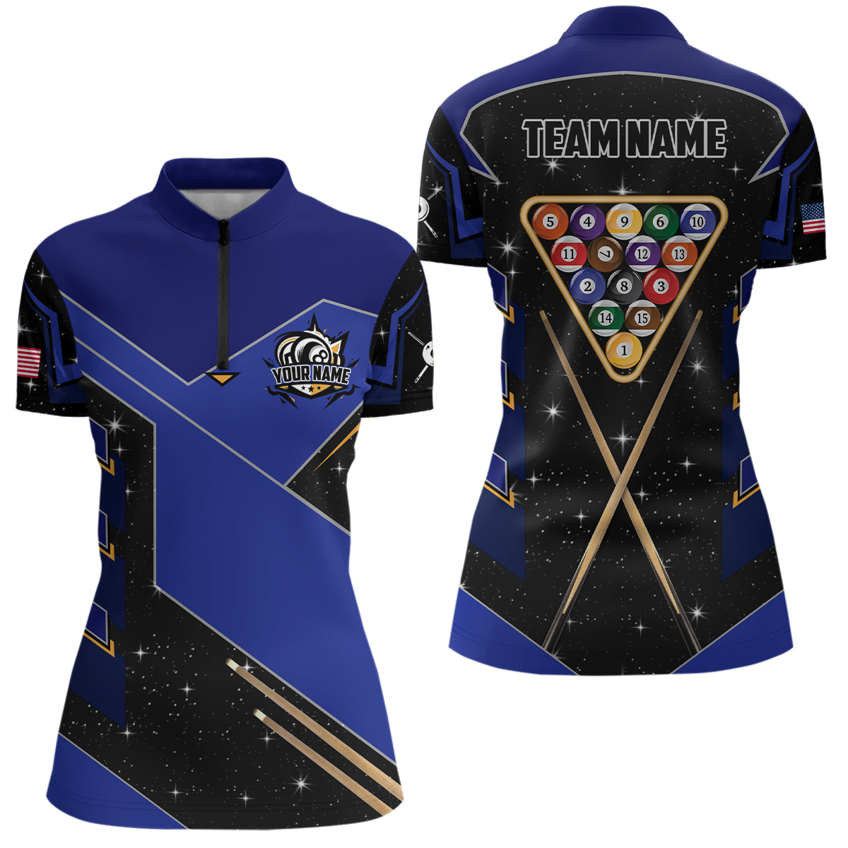 Personalized Galaxy 8 Ball Pool Billiard Shirts For Women Custom 8 Ball Billiard Attire Jersey |Blue TDM2294