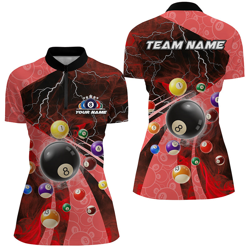 3D Billiard Balls Pool Shirts For Women Customized Lightning Billiard Jerseys Shorts Sleeve |Red TDM2328