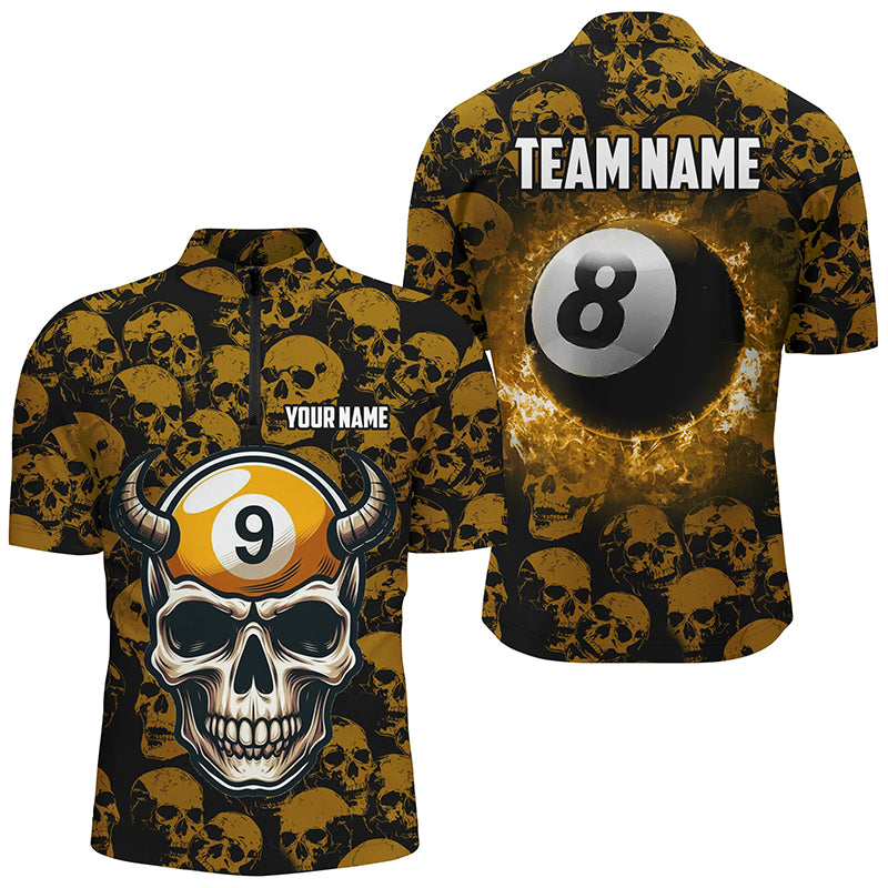 Personalized Billiard Jersey 8 & 9 Ball Custom Funny Skull Pattern Billiard Shirts For Women |Yellow TDM2369