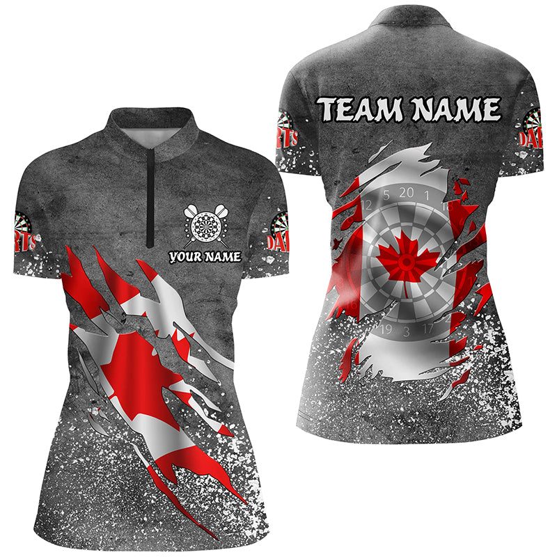 Personalized Grey Grunge Canadian Flag Darts Shirts For Women Custom Patriotic Darts Team Jerseys TDM2510