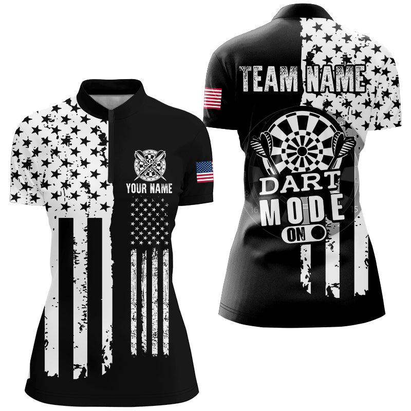 Funny Darts Mode On Custom Black White American Flag Darts Shirts For Women, Patriotic Darts Jerseys TDM2548