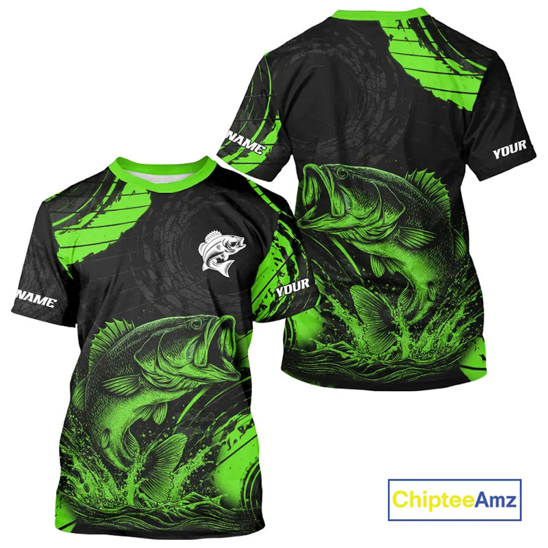 Personalized Bass Fishing Jerseys, Bass Fishing Scale T-Shirt| Green NHT386