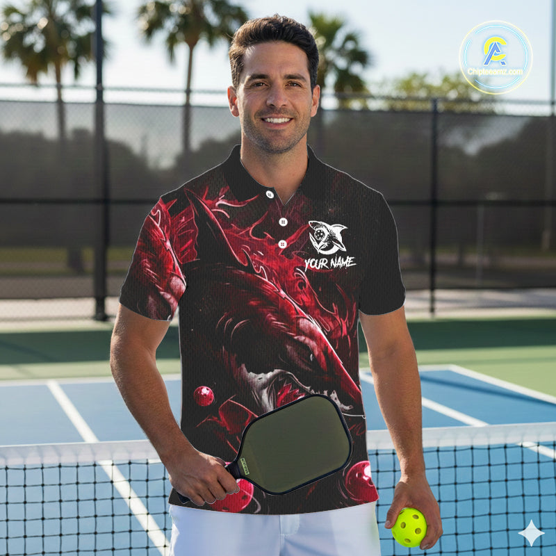Custom Red Grunge Shark Pickleball 3D Ball Jerseys Men Funny Pickleball League Shirts NYN2226