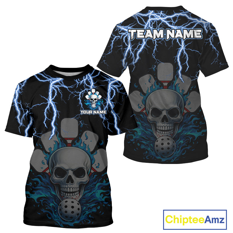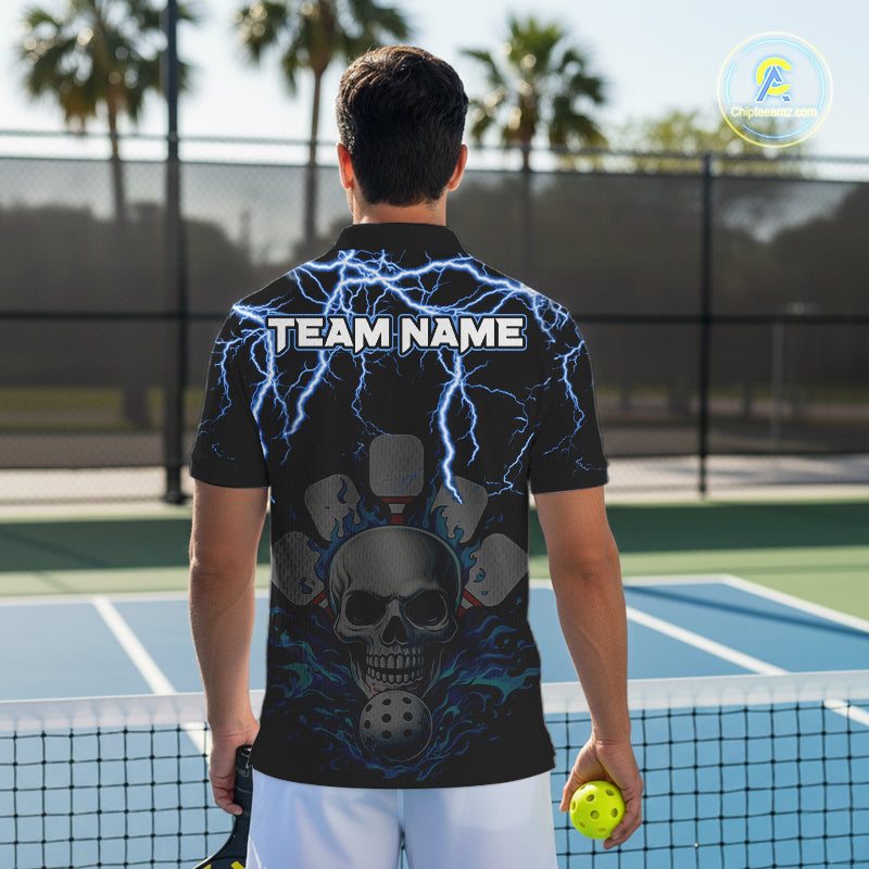 Custom Thunder Blue Flaming Skull Paddle & Ball Pickleball Jerseys Men Pickleball Shirts NYN2229
