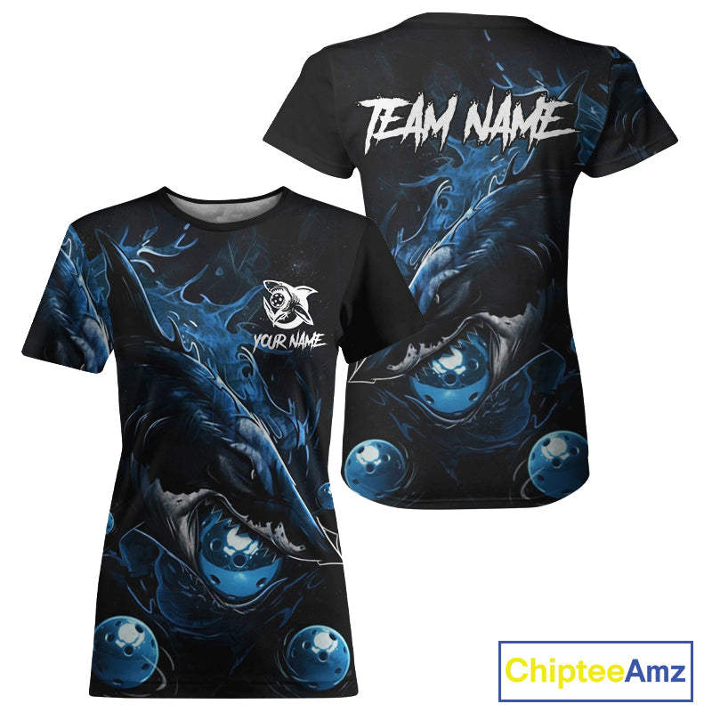 Custom Blue Grunge Shark Pickleball 3D Ball Jerseys Women Funny Pickleball League Shirts NYN2225