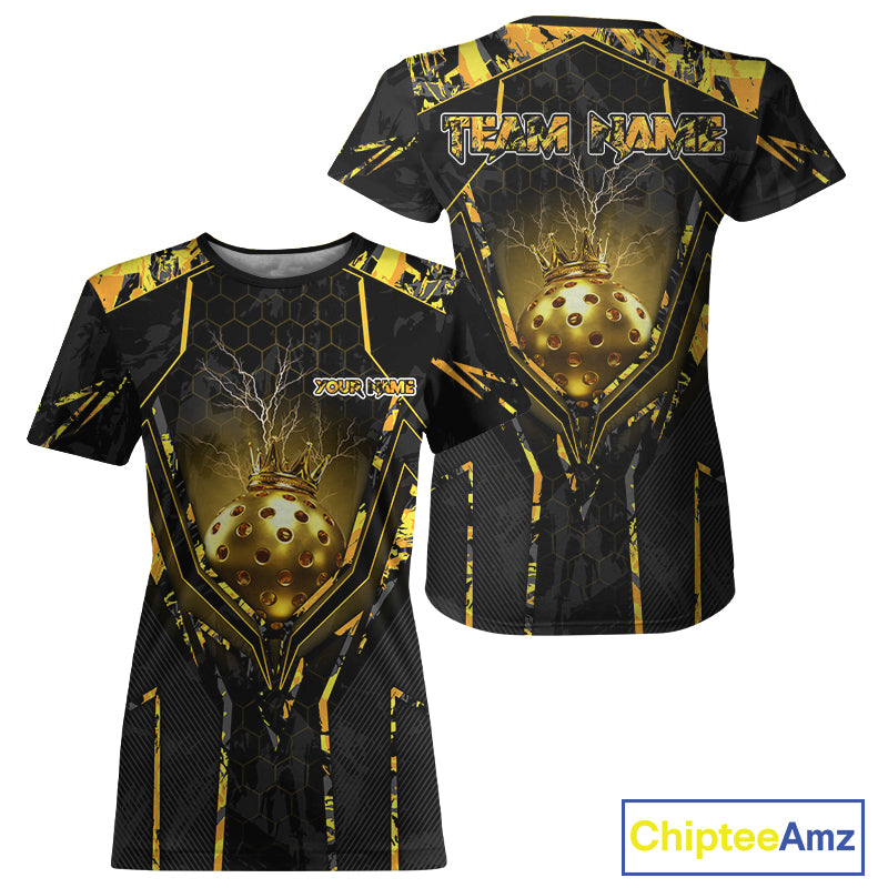 Custom Black And Yellow Gold Crown Pickleball 3D Ball Jerseys Women Pickleball League Shirts NYN2228