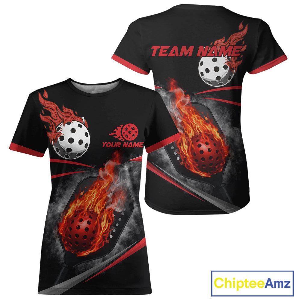 Custom Red Flaming Smoke Paddle & Ball Pickleball Jerseys Pickleball League Shirts For Women NYN2231