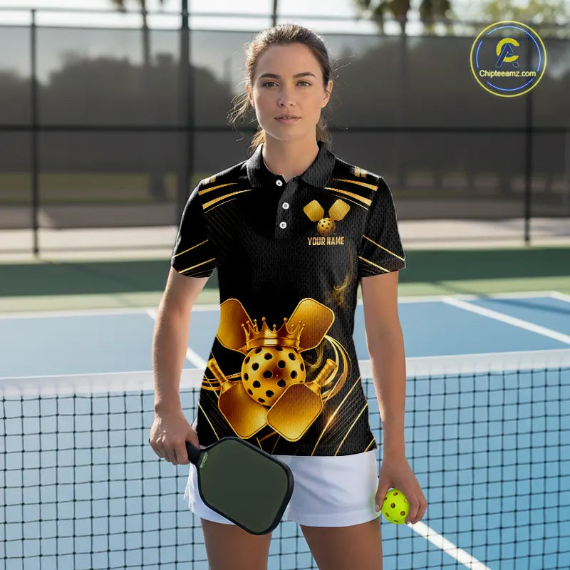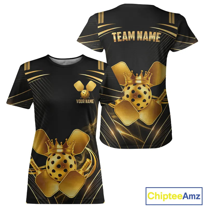 Black And Gold Crown Paddle & Ball Pickleball Jerseys Custom Women Pickleball League Shirts NYN2233