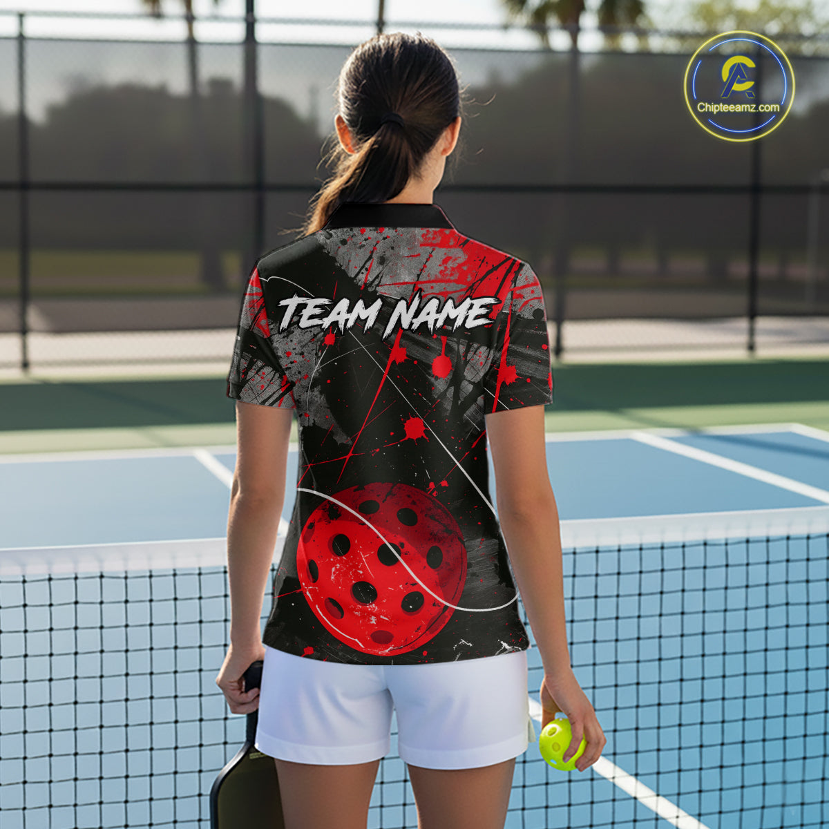 Custom Black Grunge Red Pickleball Ball T-Shirt For Women Splatter Pickleball Jerseys NYN2481