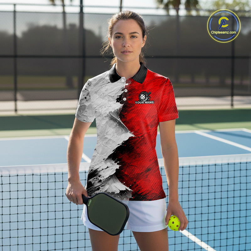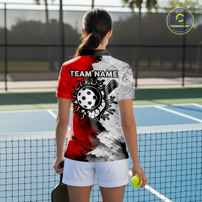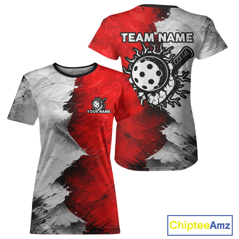 White & Red Paint Splatter Pickleball Ball T-Shirt For Women Custom Outfits Pickleball Jerseys NYN2488