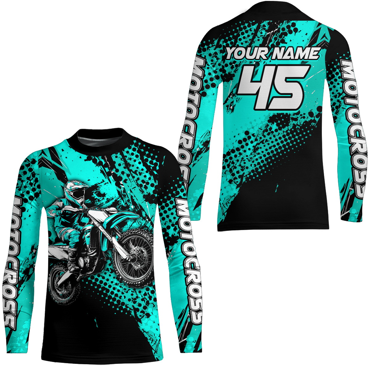 Turquoise Youth Motocross Shirts Custom Racing Dirt Bike Jersey Kid Men Women UPF30+ DNT18
