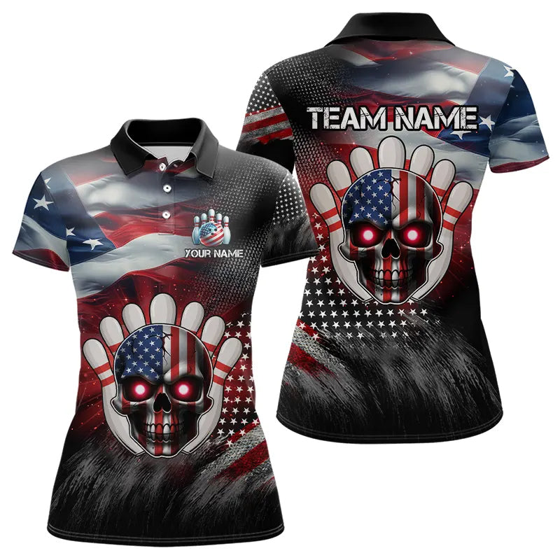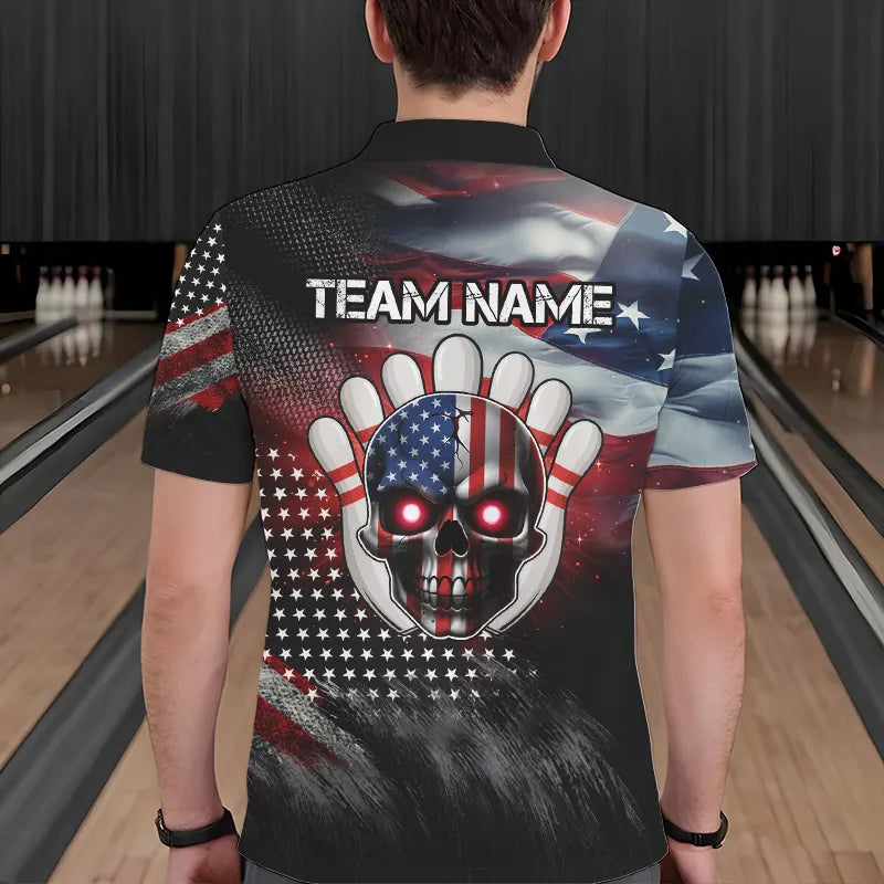 US Flag Bowling Polo Shirt for Men and Women Custom Bowling Team League QZT600