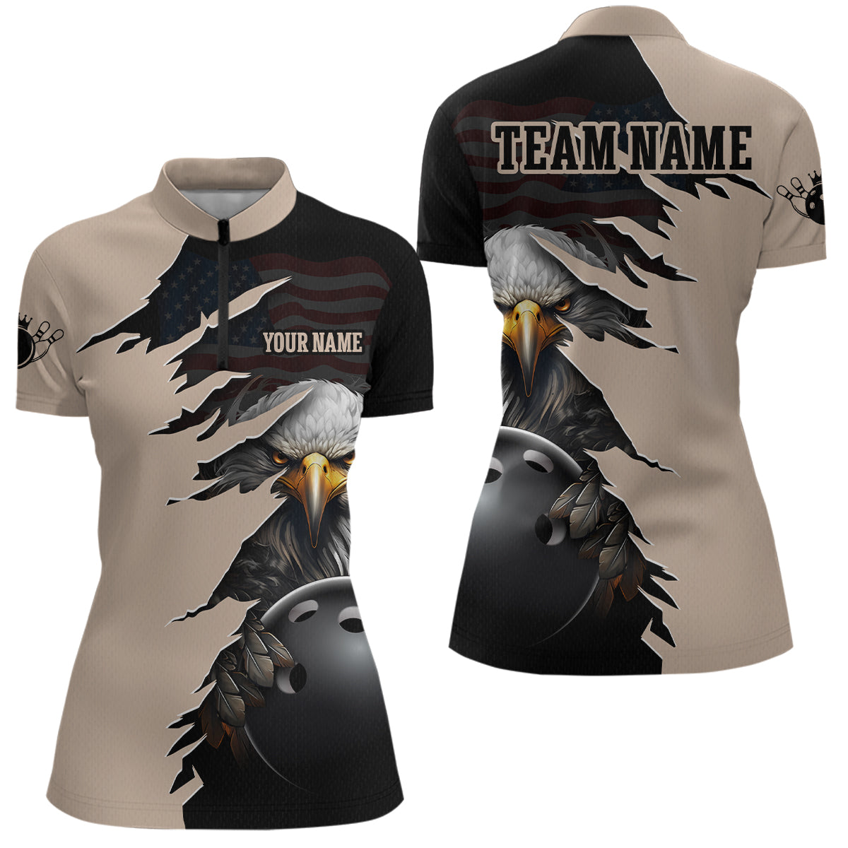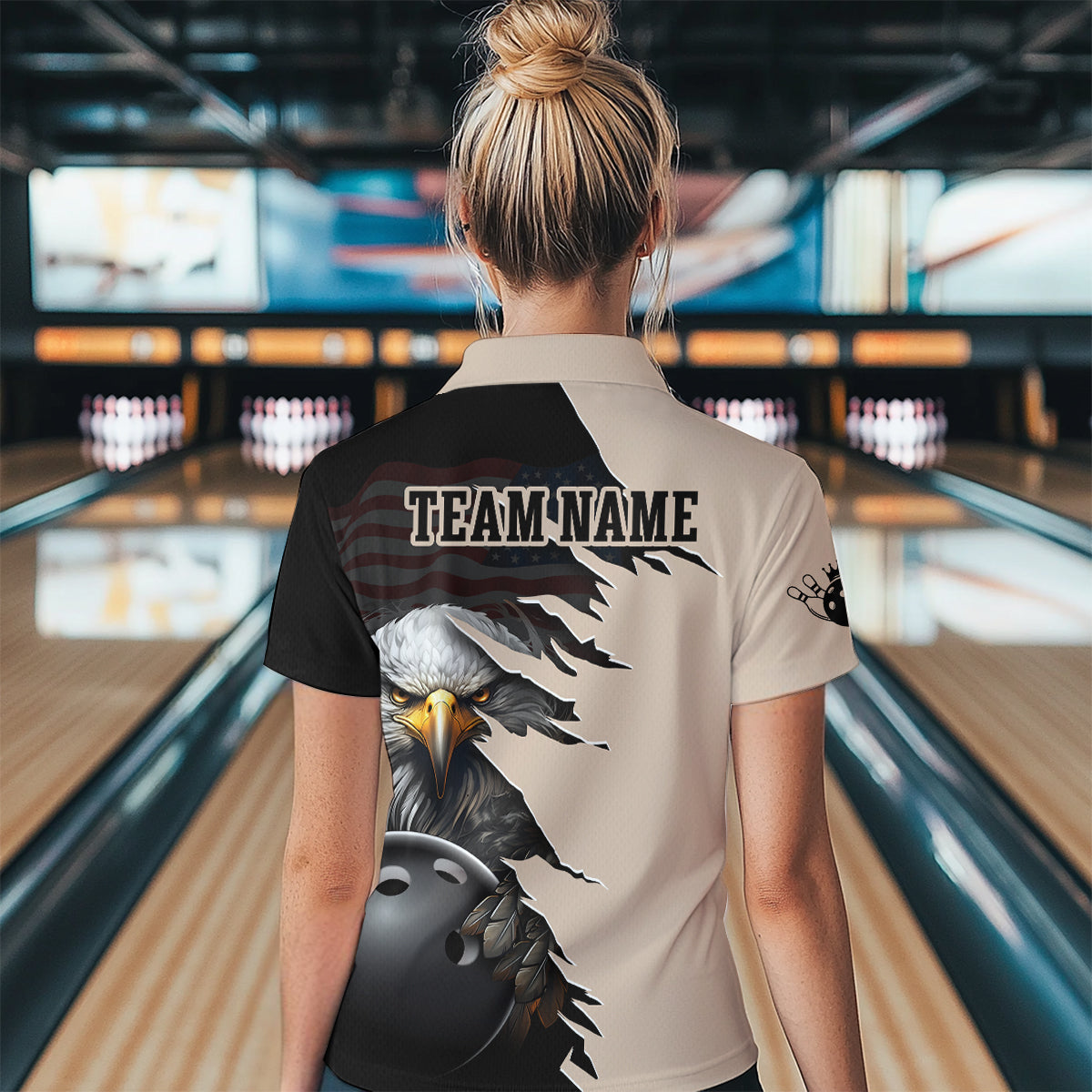 US Flag Eagle 3D Bowling Shirt for Women Custom Name Polo & Quarter-zip Bowling Jersey with Team HNT05