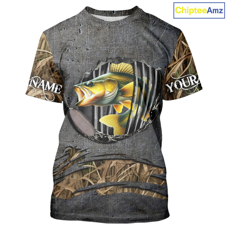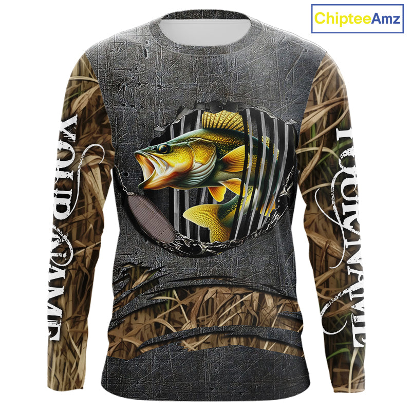 Walleye fishing camo metal grunge pattern Custom walleye fishing shirts walleye fishing gifts NQS11370