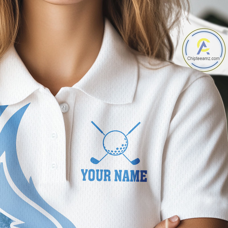 White and Blue Ice pattern Womens Christmas Golf Shirt Custom unique golf polos for ladies Xmas gift NQS10968