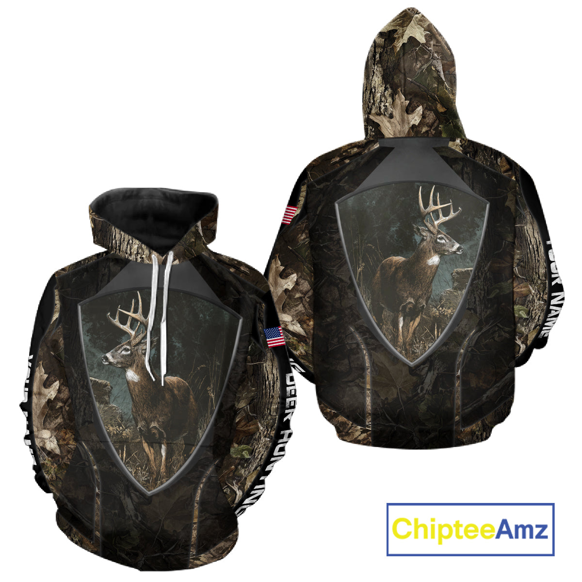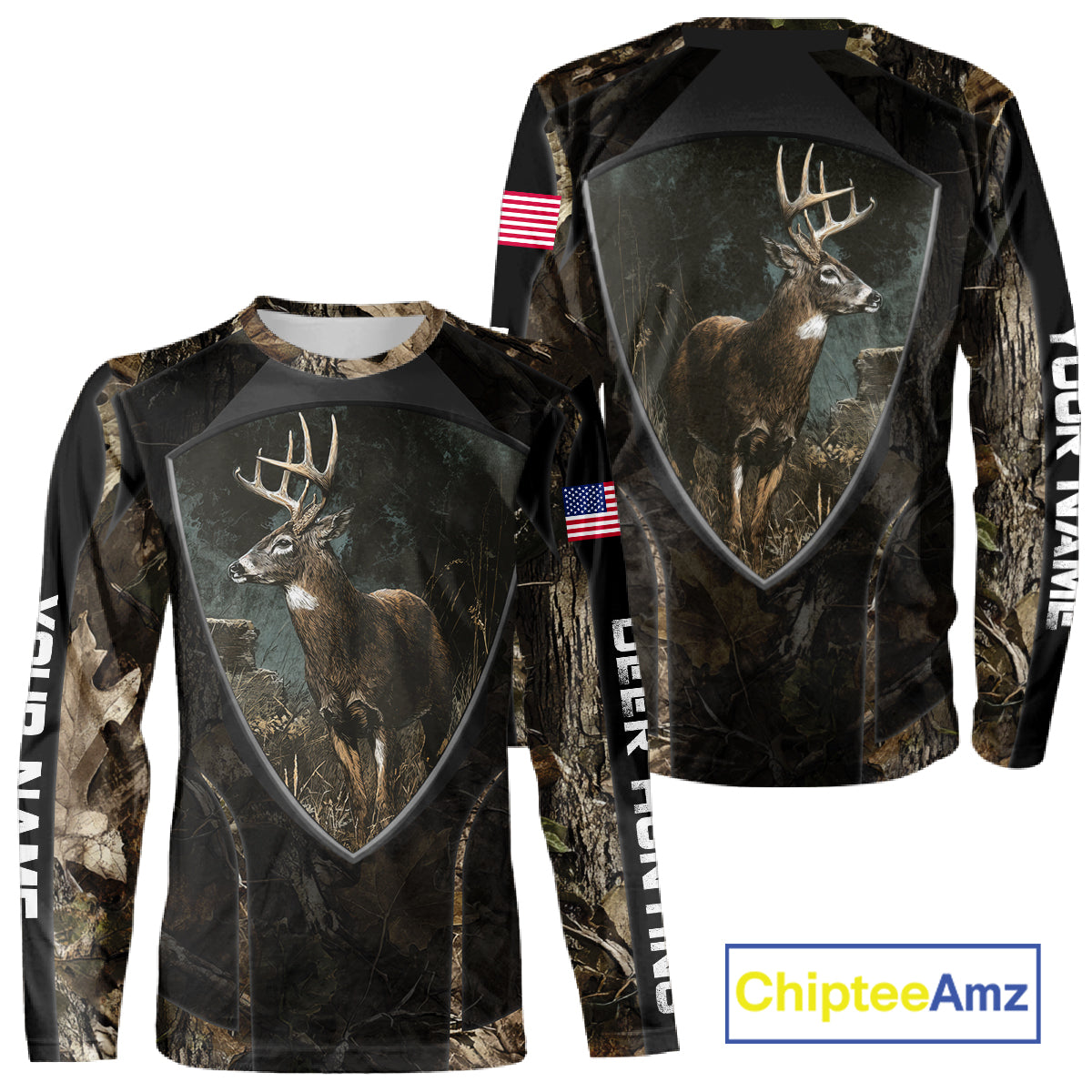 Whitetail Deer Hunting Camo US Flag 3D All Over Printed Shirts, Best Deer Hunting Gifts for Men NBT222