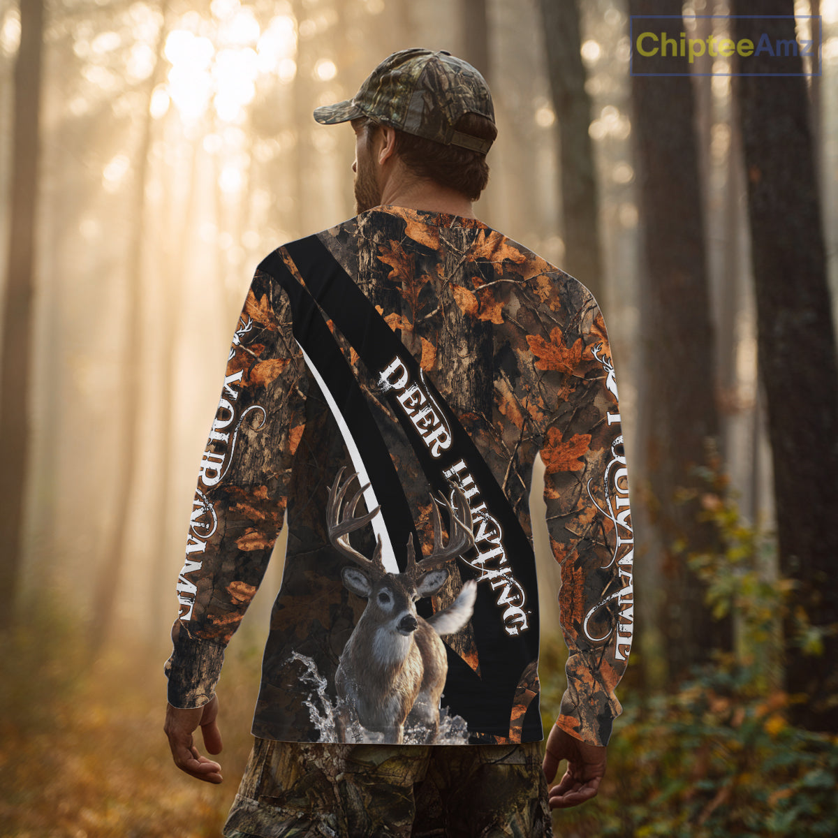 Inspired by the thrill of the hunt and the beauty of the outdoors, this shirt combines durability, comfort, and a unique hunting vibe. Customize it with your name or preferred design elements — from deer graphics to scenic landscapes — to create a one-of-a-kind piece. A perfect gift for passionate deer hunters and outdoor lovers, especially during hunting season.