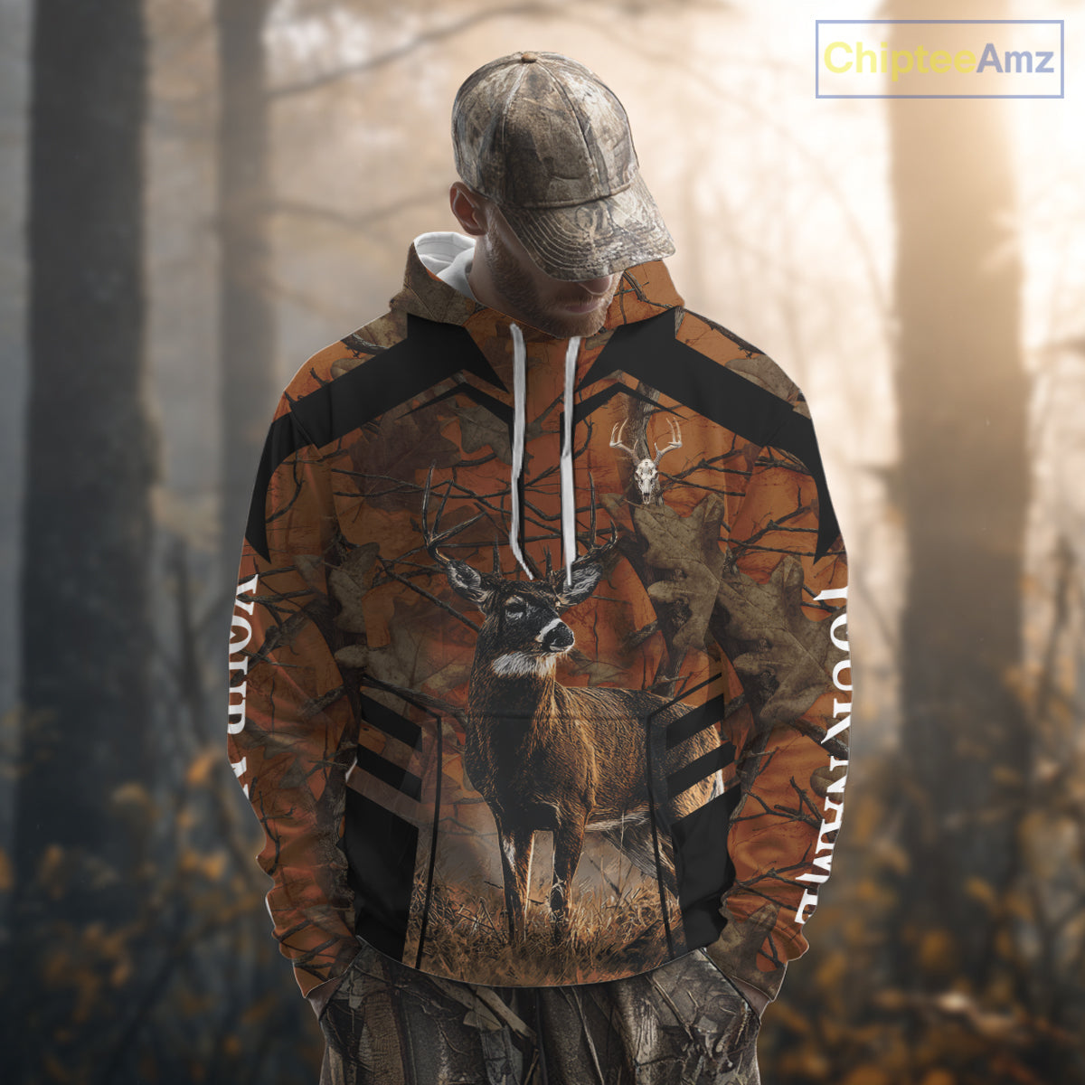 Whitetail Deer Hunting Shirt Orange Camo Custom Name, Deer Hunting Clothes NHT285
