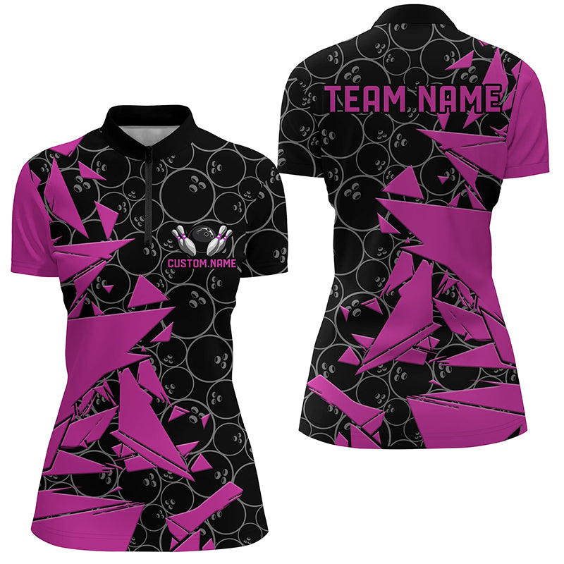 ✔️ Custom Women's Bowling Shirts Our uniquely designed bowling polo and quarter-zip shirts are ideal for proud female bowlers who want to make a bold statement. With a stylish form and distinctive design, these shirts set you apart from the rest, highlighting your passion and confidence in bowling. Add your personal touch to create a one-of-a-kind shirt that carries your unique imprint.