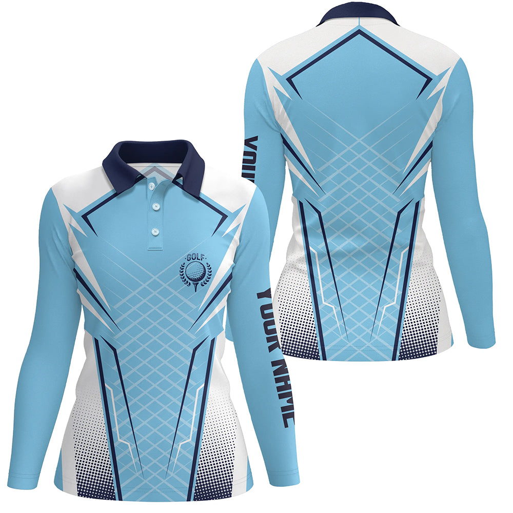 Blue White Personalized Womens Golf Polo Shirt Custom Name Golf Shirts For Women Golfer Gifts LDT1436