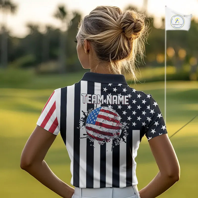 Women golf polo shirts custom Red, white and black American flag ladies golf tops, best golf gifts NQS11486