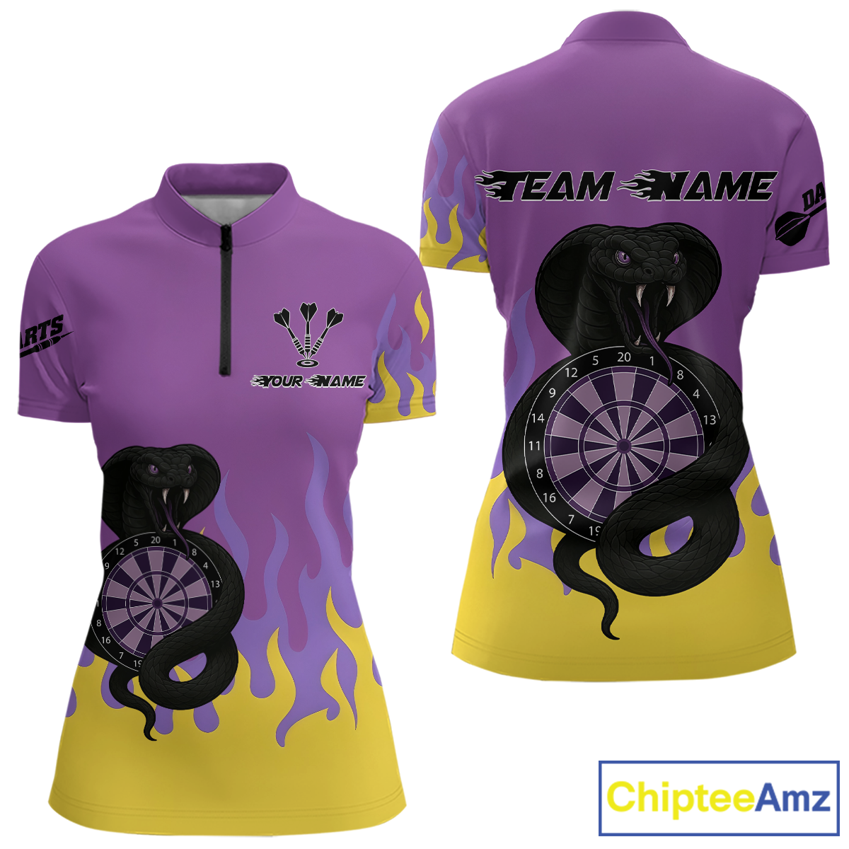 Purple Dartboard & Dark Cobra - Women's Darts Team Shirt - Custom Name For Players NYN0491