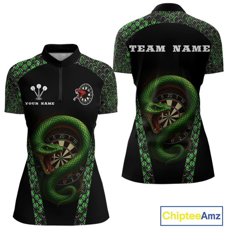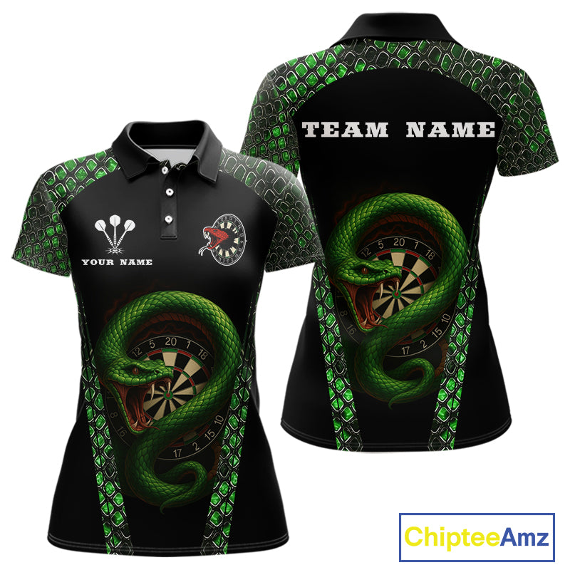 Fierce Green Serpent Dartboard Women's Darts Team Shirt - Custom Name For Players NYN0508