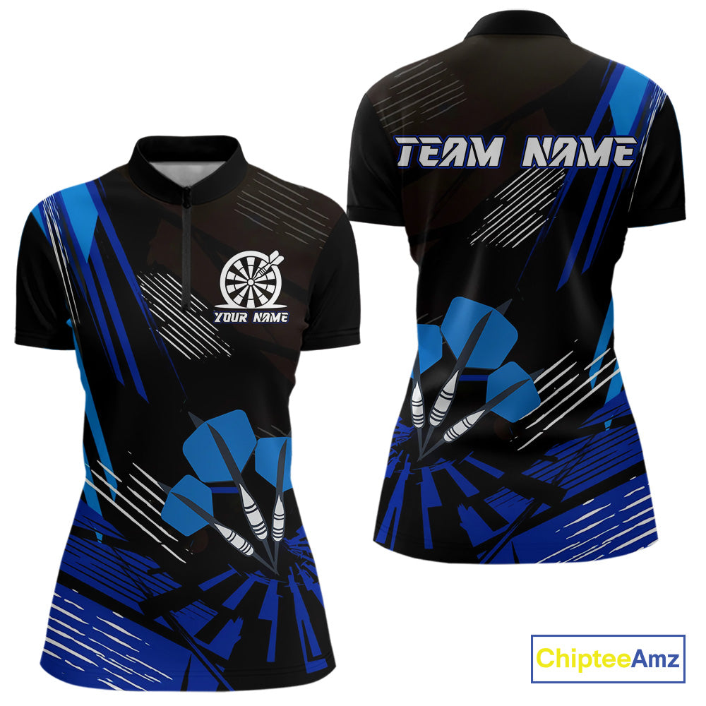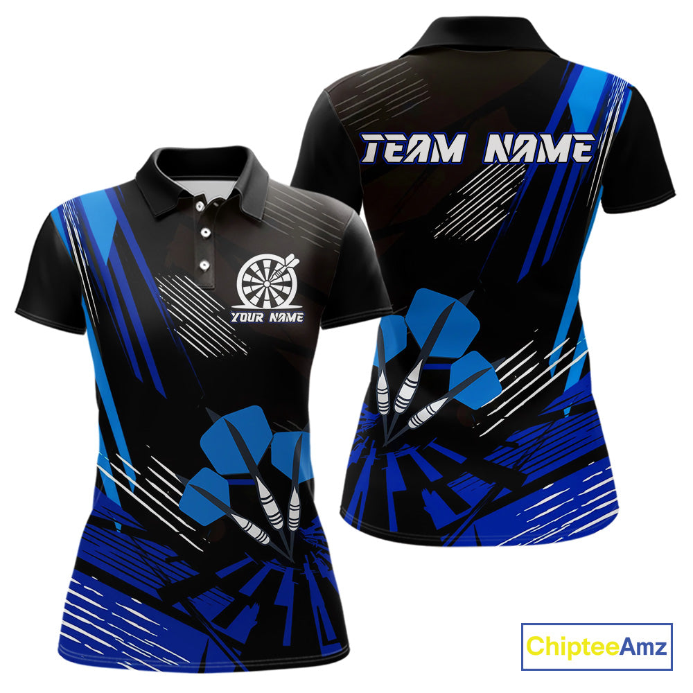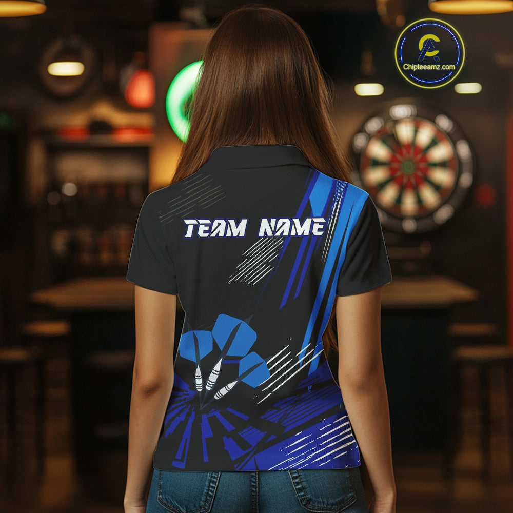 Blue Dart Arrows Grunge Dartboard Women's Darts Shirt - Custom Name For Players NYN0513