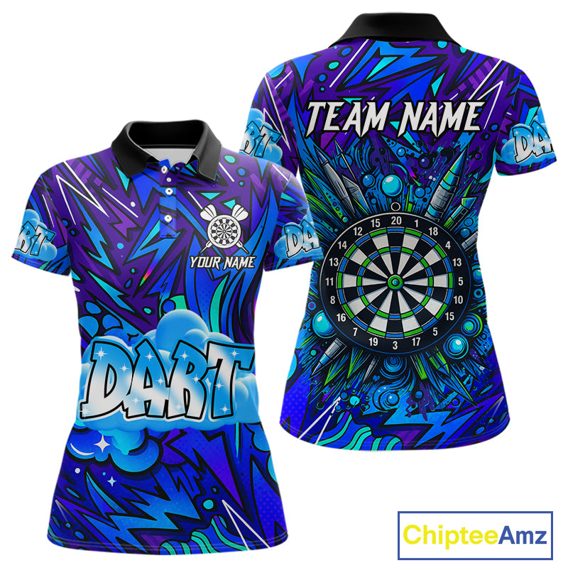 Comic Blast Dartboard Custom Blue Darts Shirt For Women - Name & Team For Players NYN0570