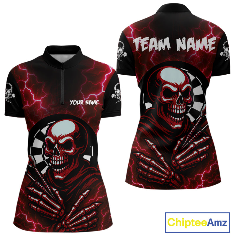 Thunder Lightning Skeleton Dartboard Red Darts Shirt For Women - Custom Name & Team  NYN0592