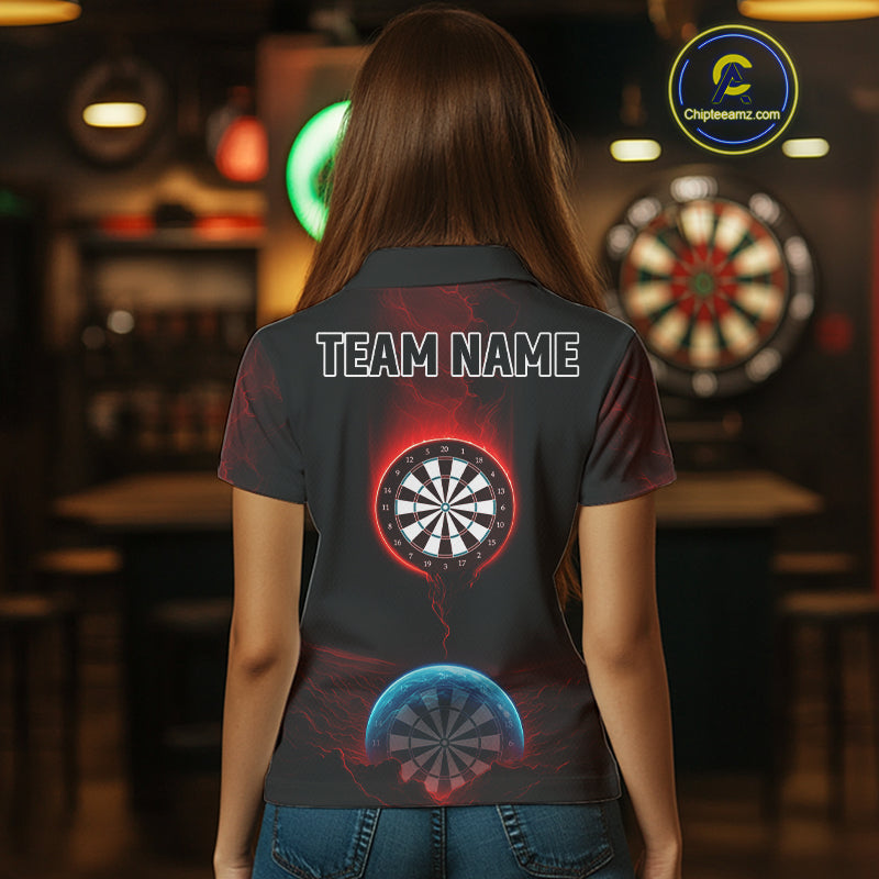 Thunder Dartboards Women's Darts Shirt - Custom Name & Team | Opt1 - Blue Red NYN0631