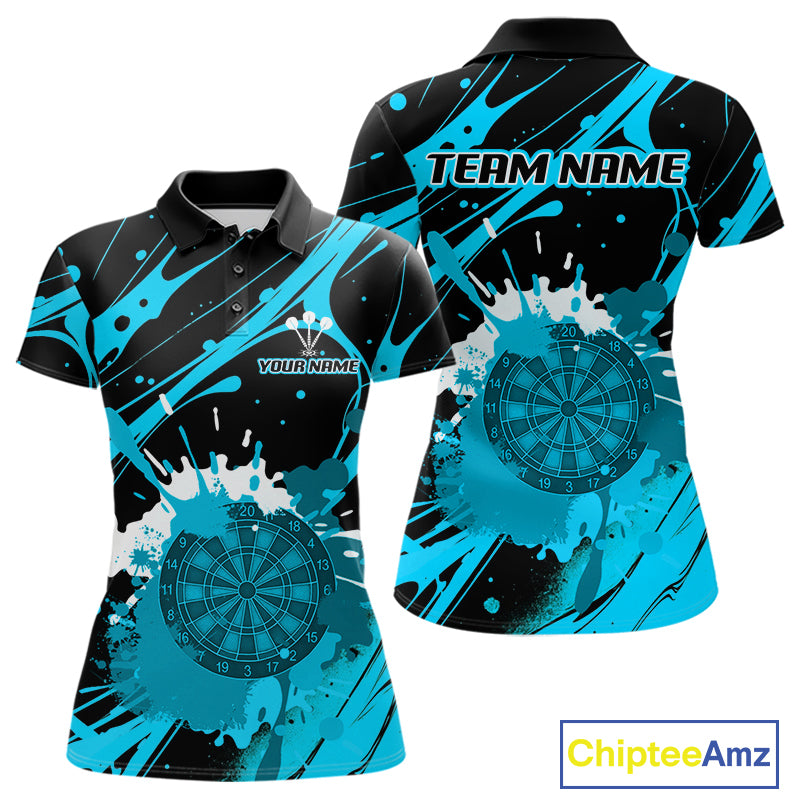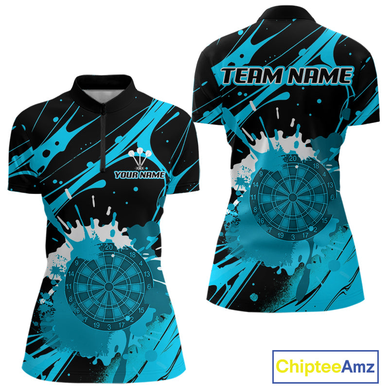Splashed Color Dartboard Grunge Women's Darts Shirt Custom Name & Team | Opt3 - Turquoise NYN0650