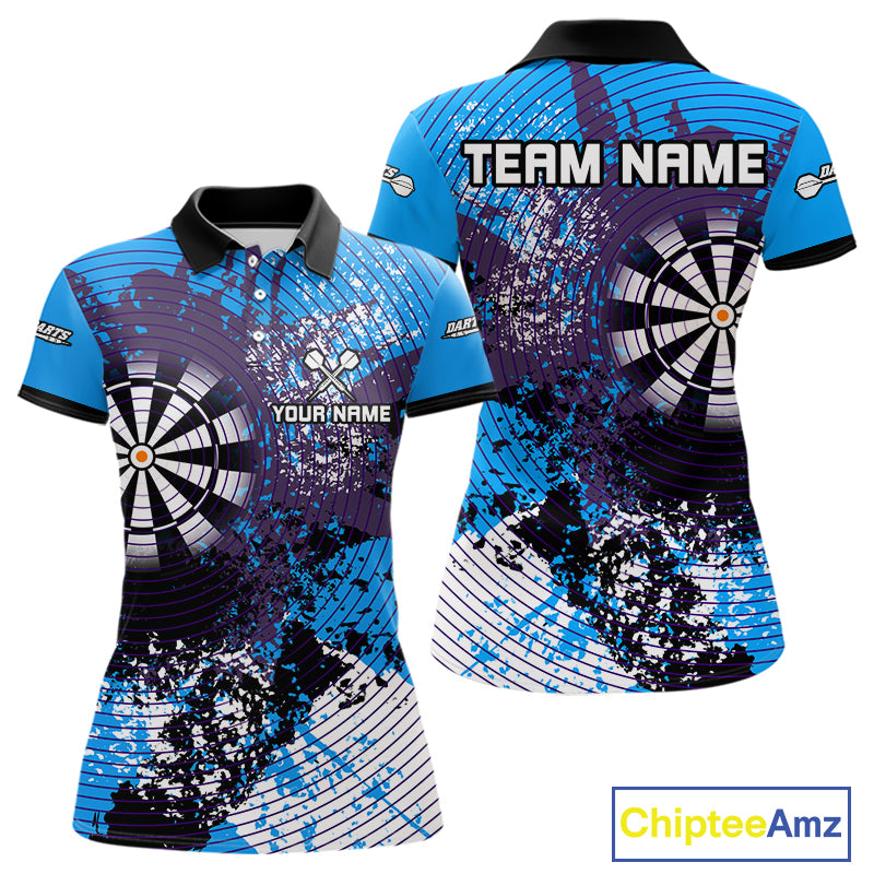 Dartboard Colorful Grunge Men's Darts Shirt Custom Name For Players | Opt1 - Blue NYN0687