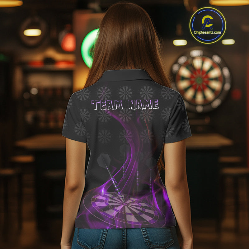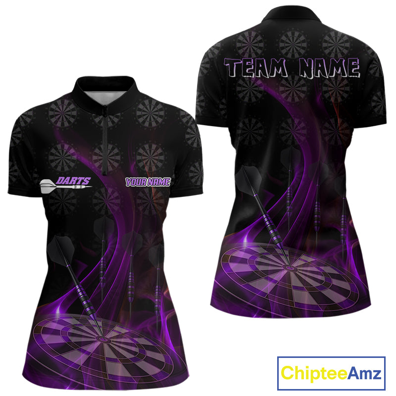 Flaming Dartboard 3D & Dart Arrow Purple Men's Darts Shirt Custom Name For Players NYN0693